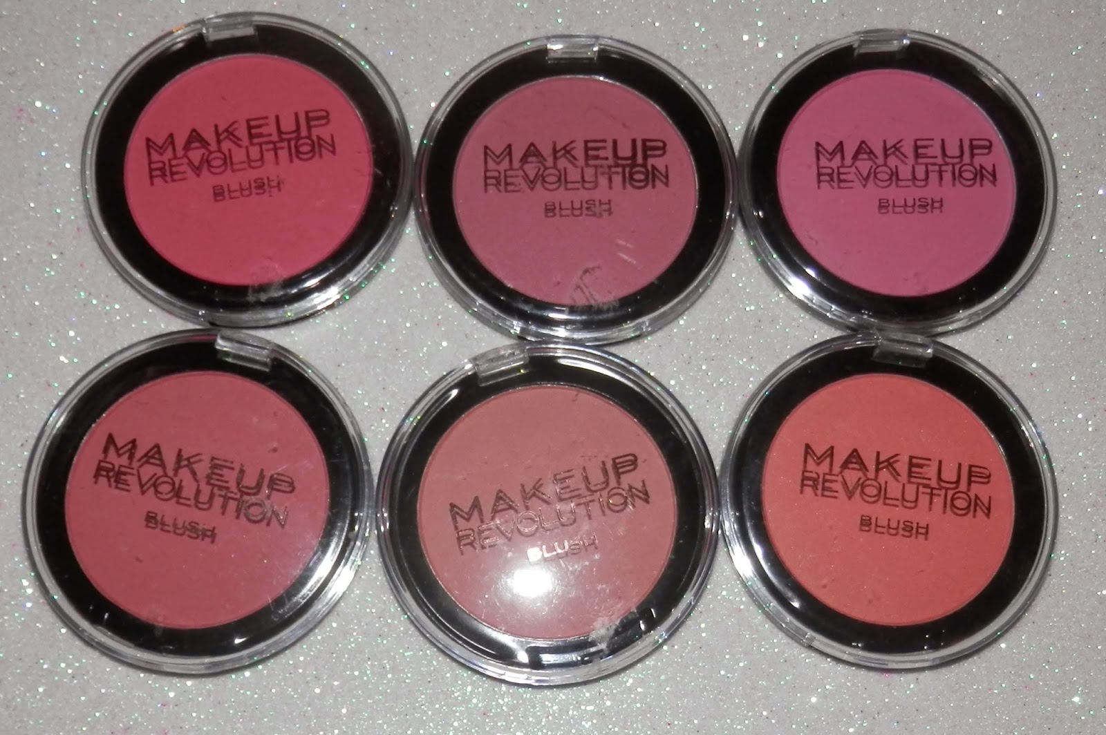 O primeiro tom da primeira fila tem o nome de All I Think About Is You e é um tom bem difícil de descrever, é assim um tom terra com fundo coral, mas ao mesmo tempo castanho, não sei explicar muito bem, mas a cor que vêem na foto esta bastante fiel. O segundo tom tem o nome de Bang Bang You're Dead e é um tom de rosa bem claro com um fundo assim a pender para o prateado, que em peles muito escuras é capaz de não aparecer, pois é um tom muito clarinho. Por fim temos o Hard day que é um blush de tom acastanhado bastante claro com fundo dourado que dá aquele aspecto de bochechas queimadas e iluminadas.
