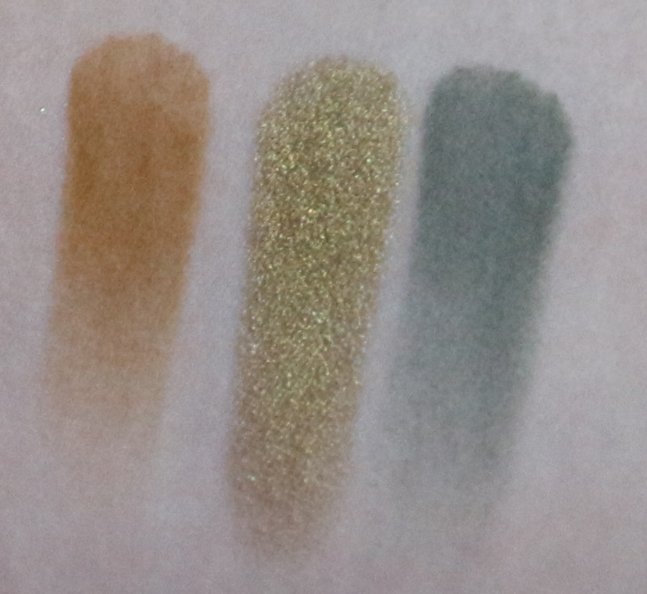 A primeira fila de sombras começa com um tom de dourado médio com fundo a puxar para o acobreado que é de acabamento metálico e tem o nome de Toucan. Em seguida temos a Clay que é de acabamento mate e é um tom de laranja torrado claro. E por fim, temos a Tigress que é de acabamento metálico e é um tom de cobre claro alaranjado lindíssimo.